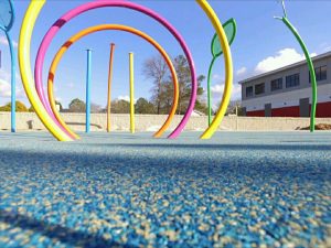 For easier maintenance and depth requirements, consider surrounding potentially risky areas with poured-in-place rubber safety surfacing, and you will have an attractive, effective way to cushion falls without always having to rake loose fill materials back into place.