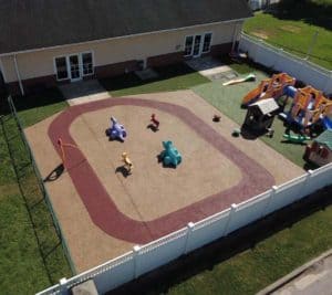 E-Kids Learning Center is located in Chattanooga, Tennessee and offers day care services for young children.  No Fault partnered with Playworld Preferred to repair their poured-in-place rubber playground surface provided by a previous installer in 2016.