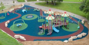 Finally, if you need assistance selecting the right playground safety surfacing for your play space, No Fault representatives can help! No Fault provides playground surfacing nationwide, including poured-in place rubber surfacing, bonded and loose-fill rubber mulch, rubber tiles, and synthetic turf. Wherever your group is in the planning process, you can reach out to No Fault today for help!