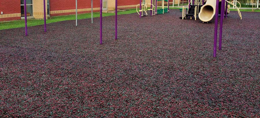 Rubber mulch offers safety on the playground, especially compared to traditional wood chips. Many schools choose rubber mulch for their playground because it is long-lasting and provides unmatched shock absorbency.